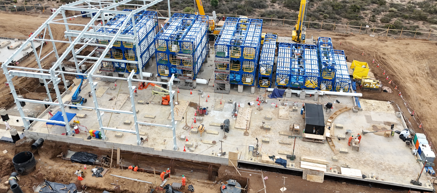 The construction of the Aconcagua EPC desalination project in Chile is progressing with a rapid installation of its MPD pre-assembled SWRO trains.